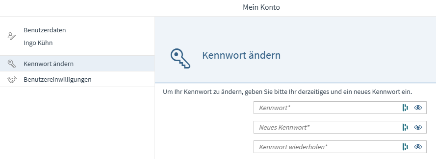 Es öffnet sich der Dialog Mein Konto. Wählen Sie dort Kennwort ändern.