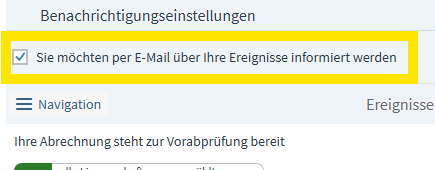 Wir versenden täglich E-Mail-Benachrichtigungen zu verschiedenen Ereignissen im Kundenportal, damit Sie stets auf dem Laufenden bleiben. Diese Benachrichtigungen können Sie bei Bedarf im Menüpunkt Benachrichtigungen deaktivieren. In der untenstehenden Abbildung sehen Sie, wo Sie diese Einstellungen vornehmen können.- Klicken Sie rechts oben auf Ihre Initialen und anschl. auf Benachrichtigungen