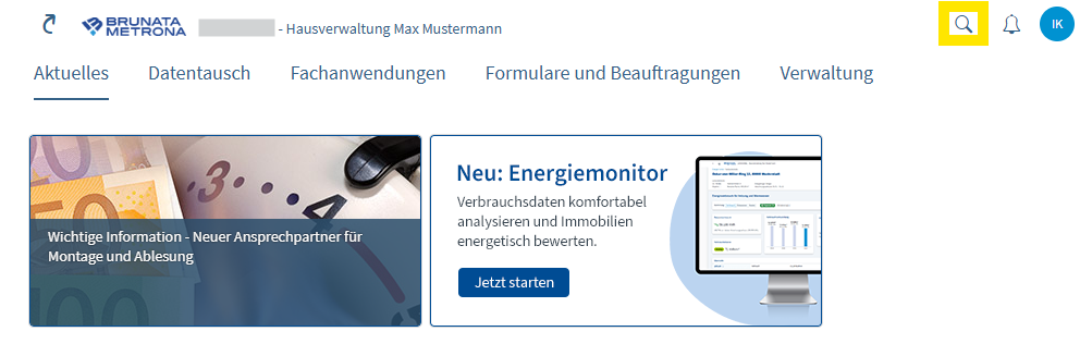 Oben rechts finden Sie das Icon zur Suche.
