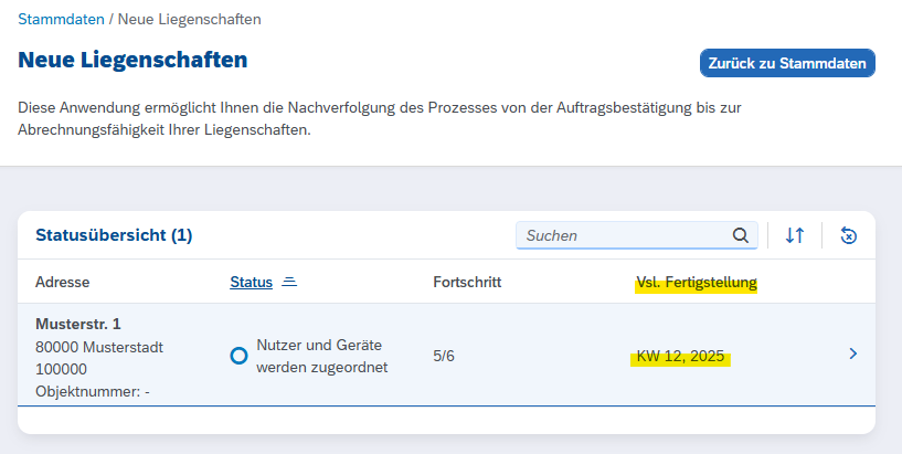 Status-Tracker für neue Liegenschaften