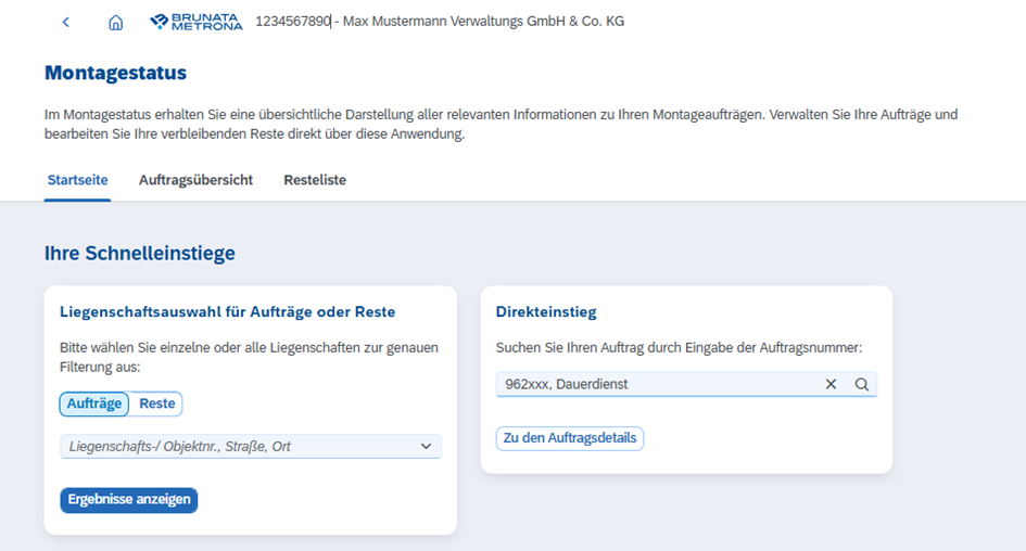 - Falls Ihnen die Auftragsnummer nicht vorliegt, können Sie den Auftrag alternativ über die Liegenschaftsauswahl suchen.