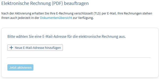 Die Adresse muss über den enthaltenen Bestätigungslink aktiviert werden, bevor sie für den elektronischen Rechnungsservice genutzt werden kann.